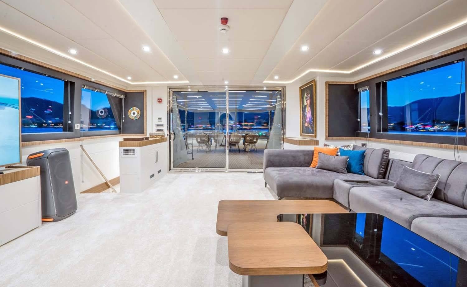 Моторная яхта Deep Water чрезвычайно комфортабельна и спроектирована так, чтобы отвечать вашим самым высоким ожиданиям: просторный салон с зоной отдыха, просторная кормовая палуба с обеденной зоной и матрасами для отдыха, зона для загара на носу, флайбридж, широкие и просторные каюты, оснащенные всем необходимым для того, что ваш отдых прошел по высшему разряду.