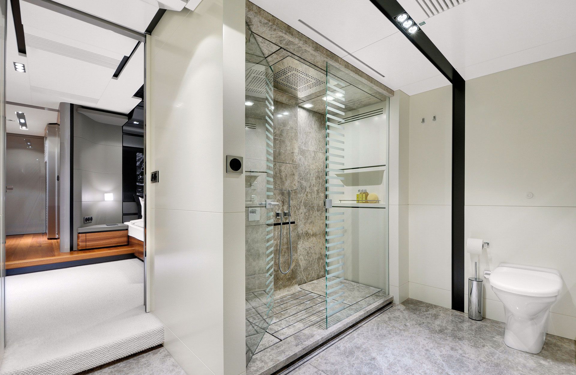 Полуводоизмещающий корпус с четкими и гладкими линиями гарантирует незабываемый комфорт, в обеспечении которого не последнюю роль играют стабилизаторы качки, работающие как на ходу, так и во время стоянок на якоре. Сравнительно небольшая осадка позволяет добираться до укромных местечек практически у самого берега.