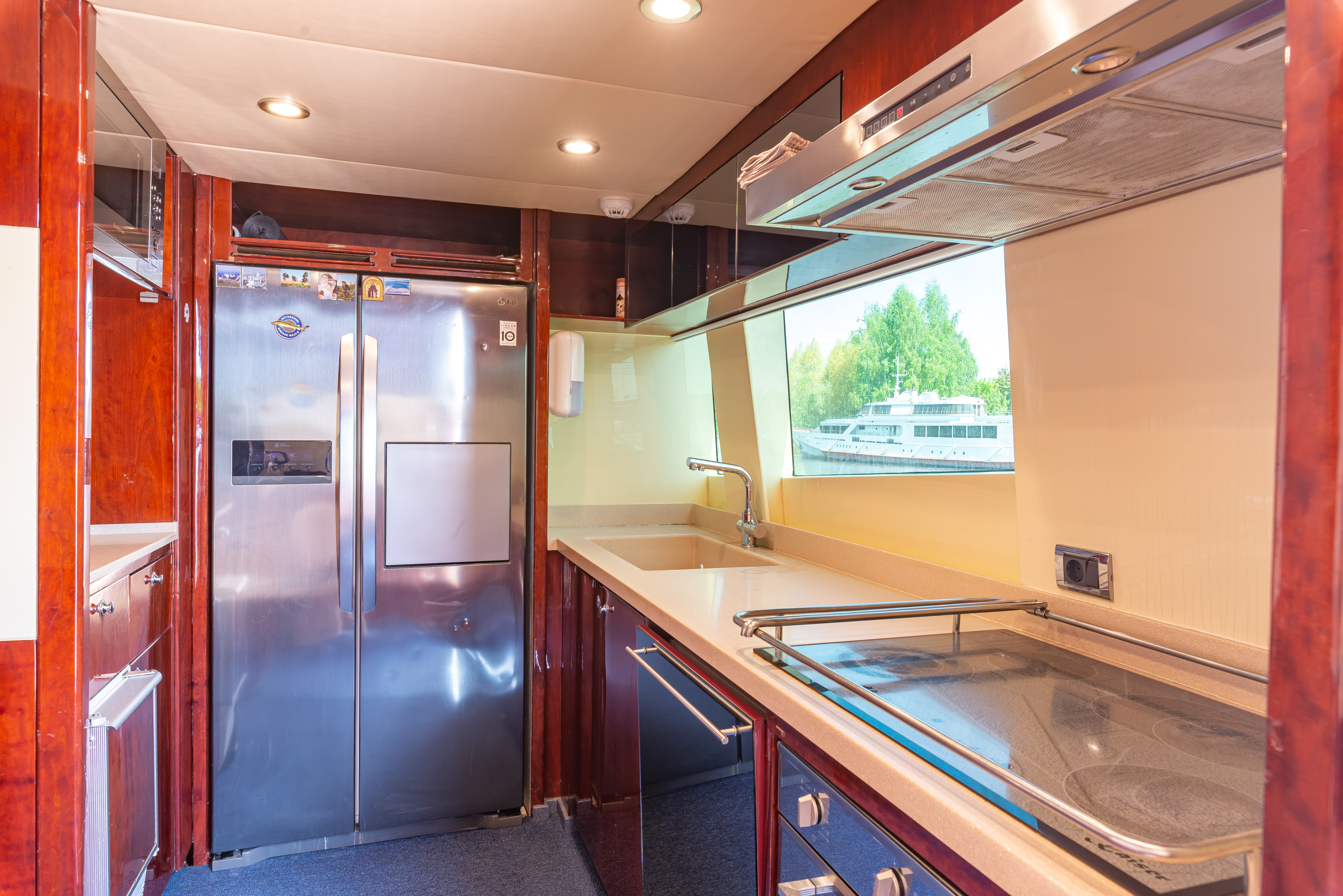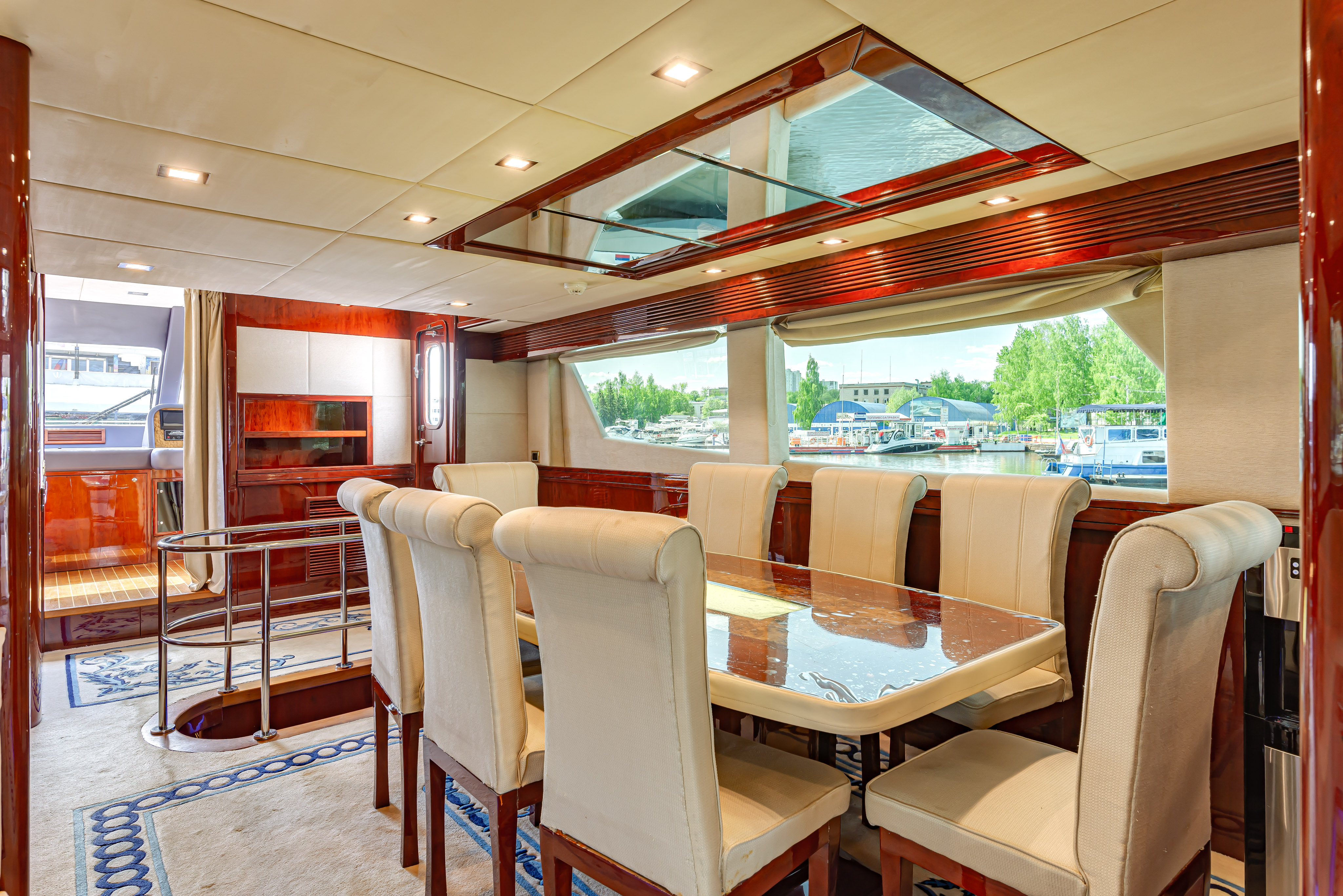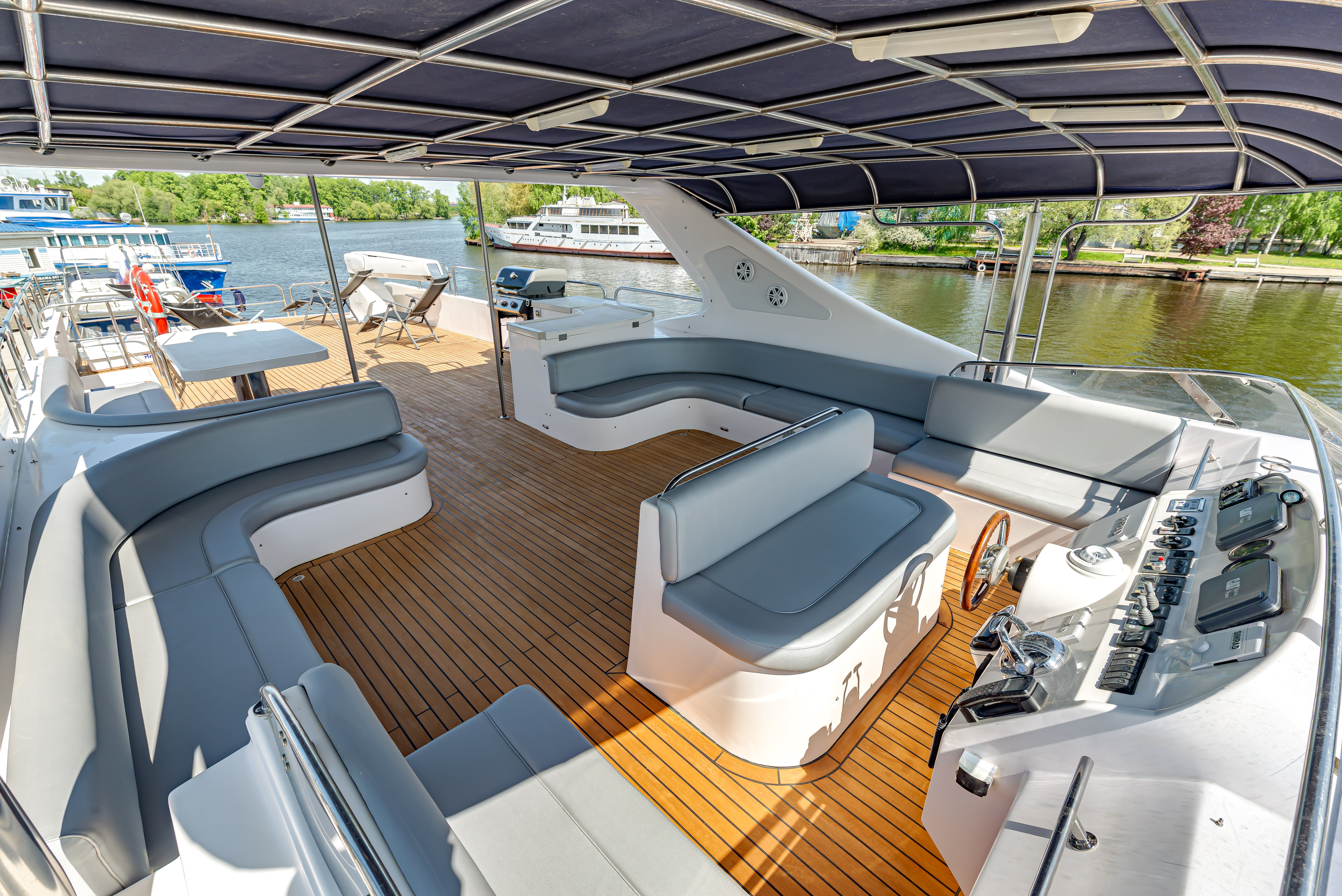 Простор на верхней палубе (флайбридже) с зоной отдыха и барбекю как будто специально создан для вечеринок во время дневных прогулок по Подмосковью или отдыха во время круиза по Волге.
