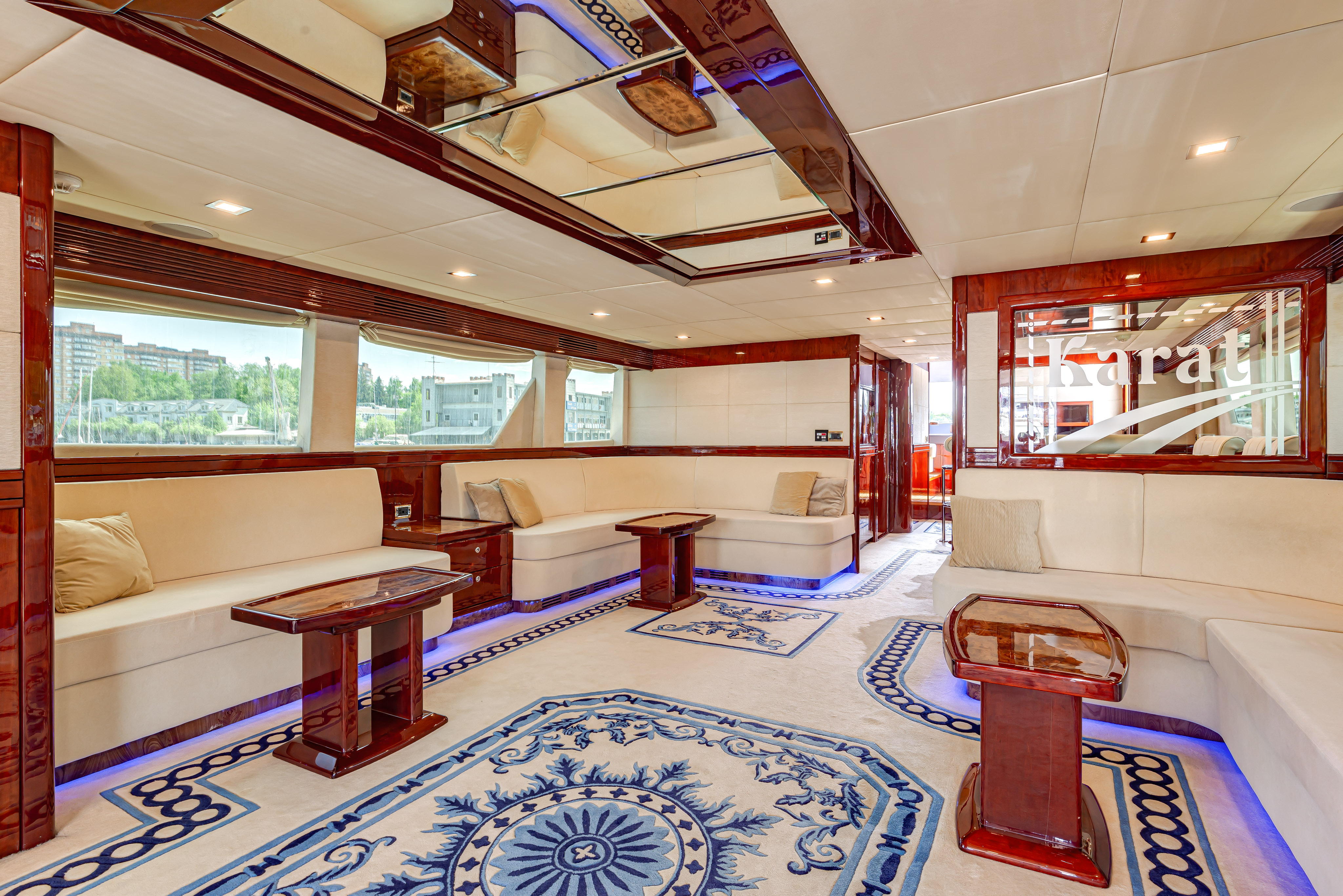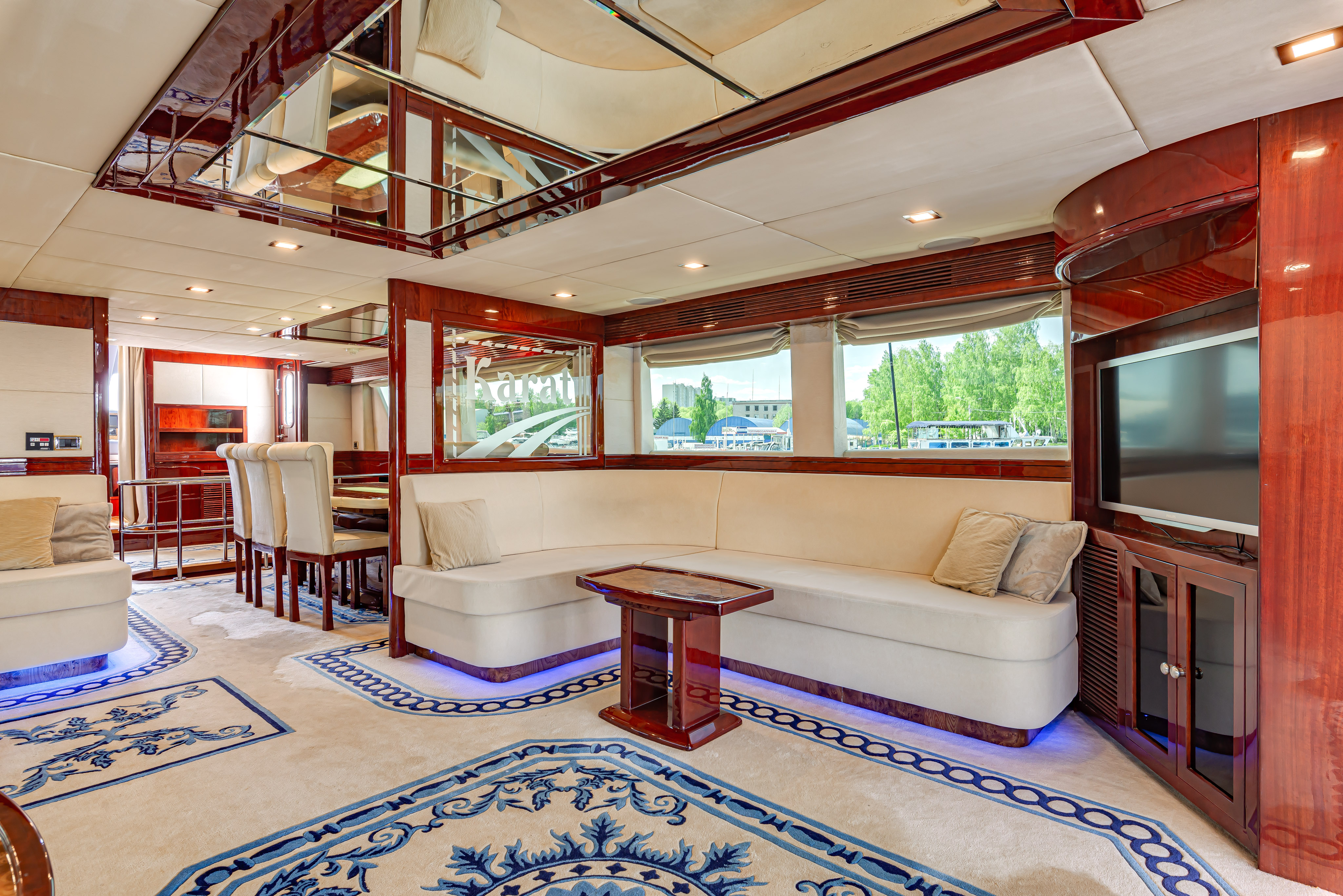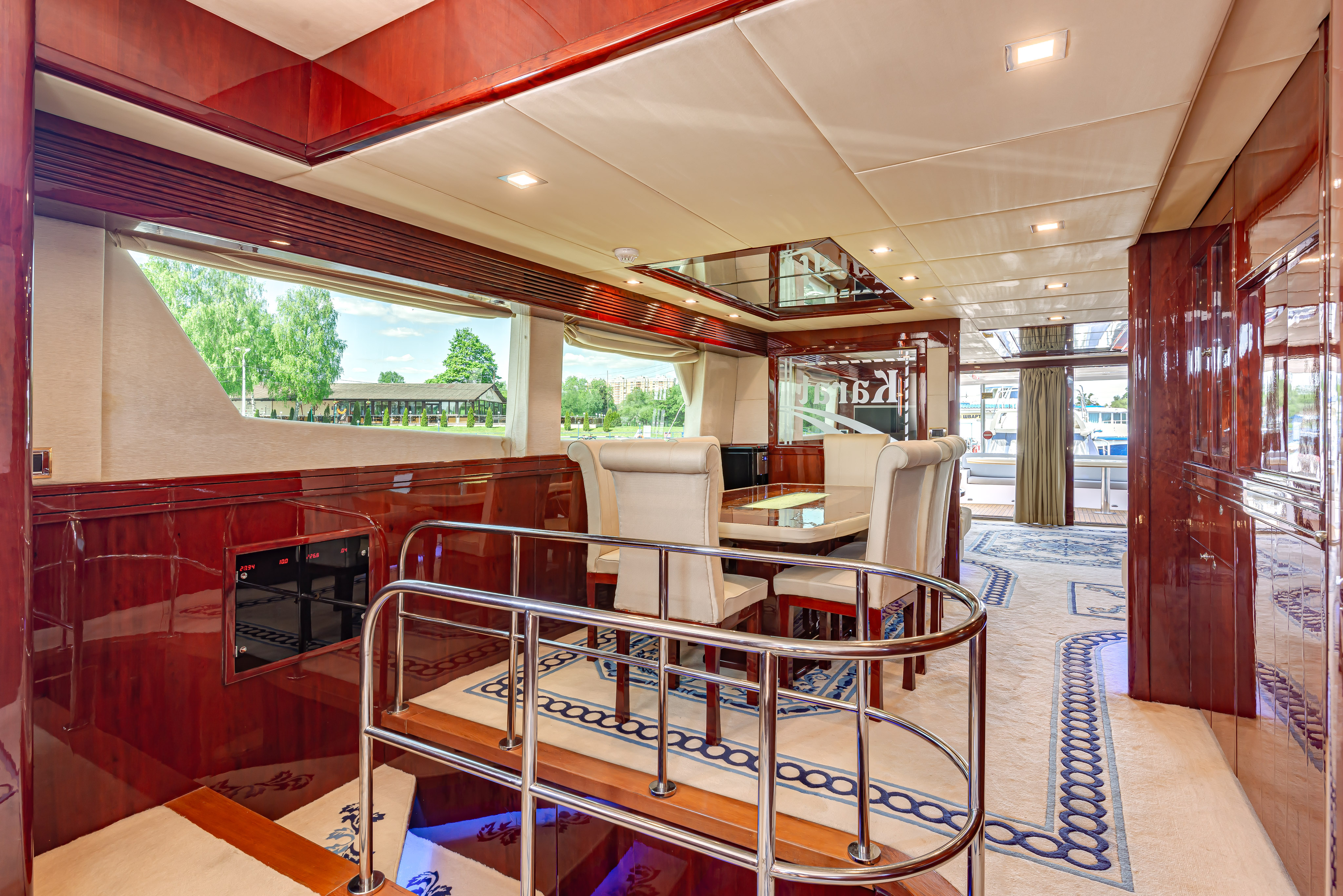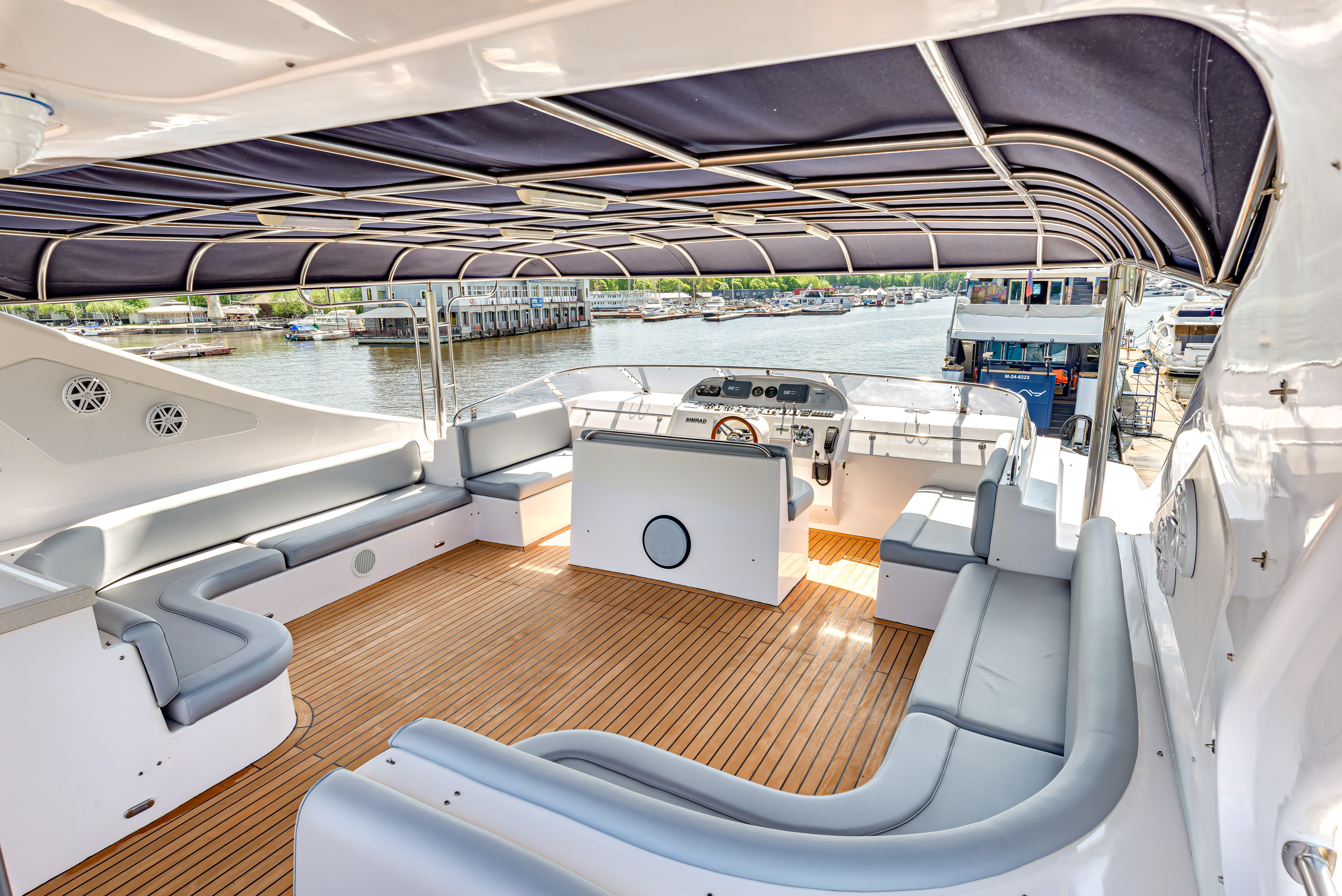 Простор на верхней палубе (флайбридже) с зоной отдыха и барбекю как будто специально создан для вечеринок во время дневных прогулок по Подмосковью или отдыха во время круиза по Волге.