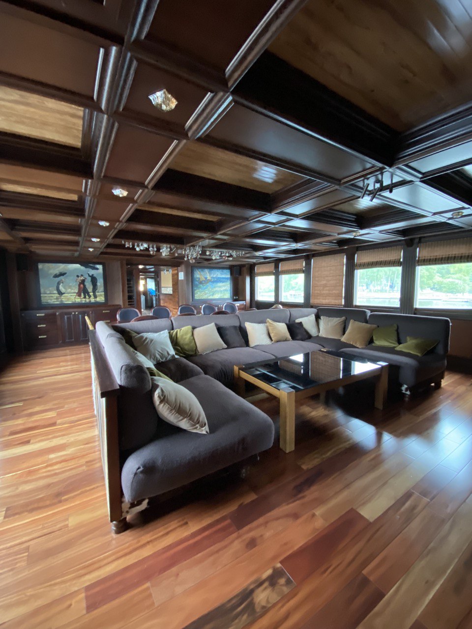 Просторная верхняя палуба для принятия солнечных ванн, тендер для прогулок вдоль береговой линии и высадки в бухтах, шикарный салон в премиальной отделке натуральными материалами, а также сауна, бар, кинотеатр и караоке - все это ждет вас на борту.