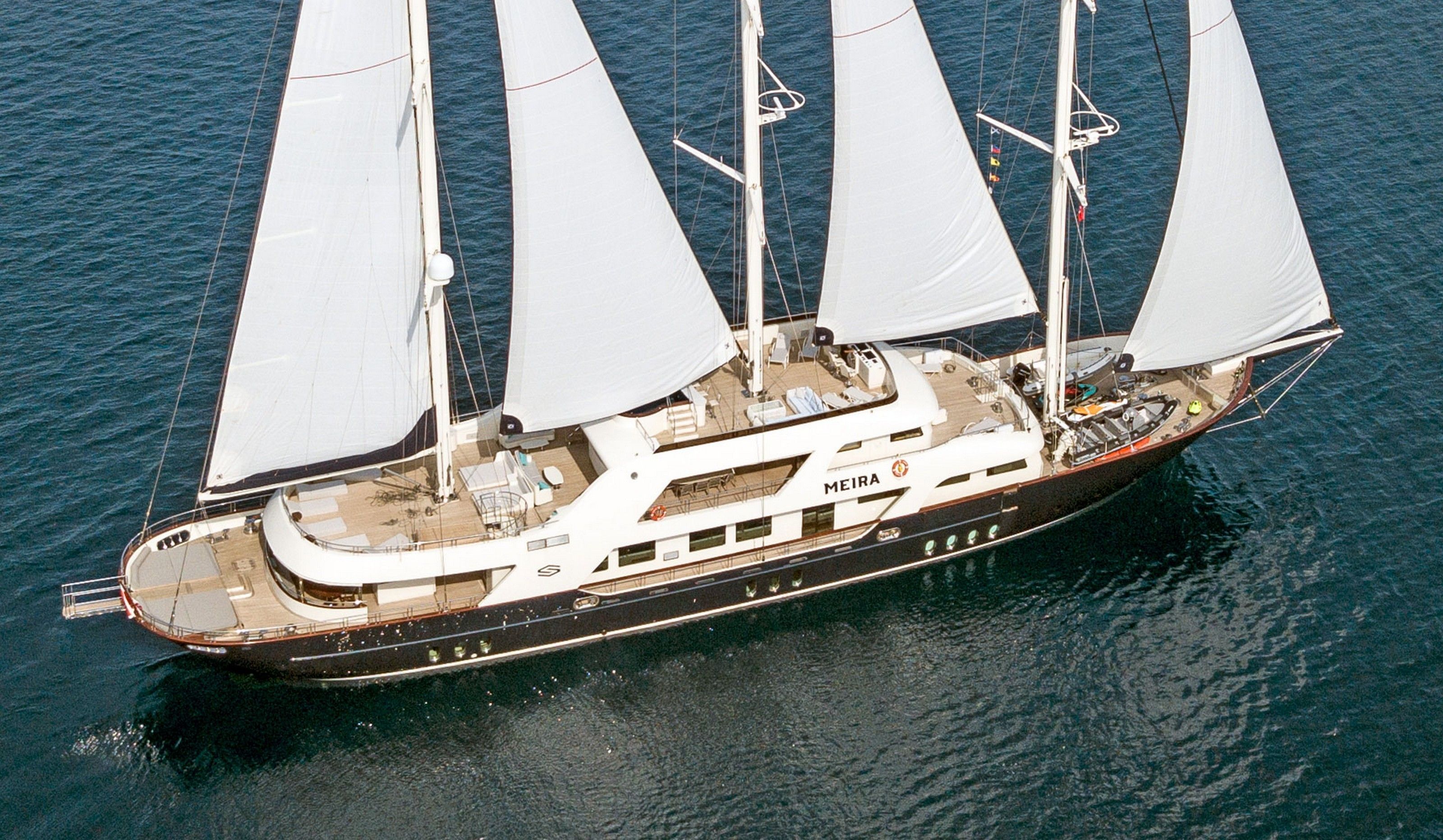 Парусно-моторная яхта MEIRA - единственная в своем роде. На борту к Вашим услугам удобства премиального уровня и профессиональный экипаж из 11 человек, который позаботится обо всех ваших потребностях: от индивидуального обслуживания до изысканной кухни.