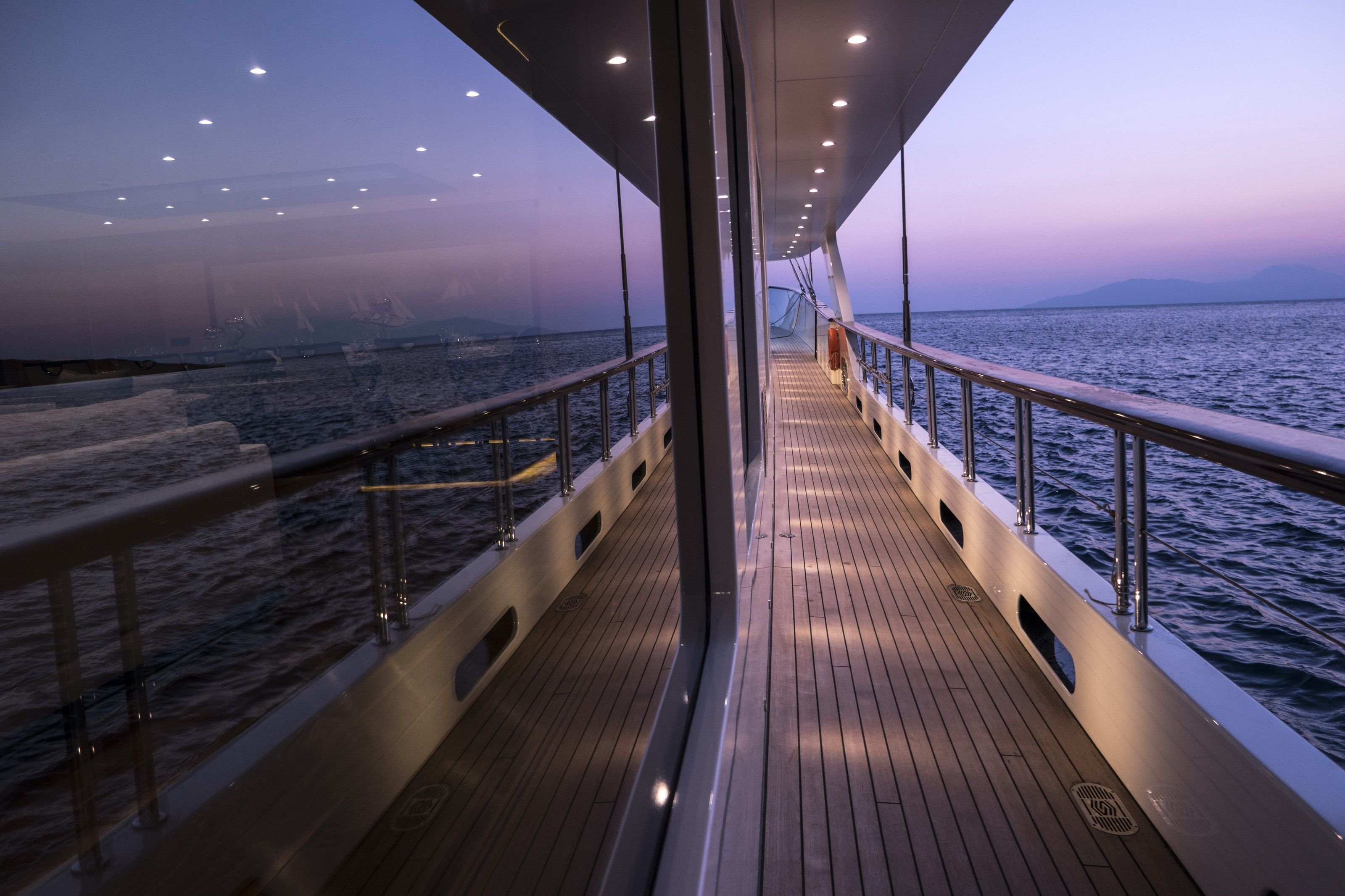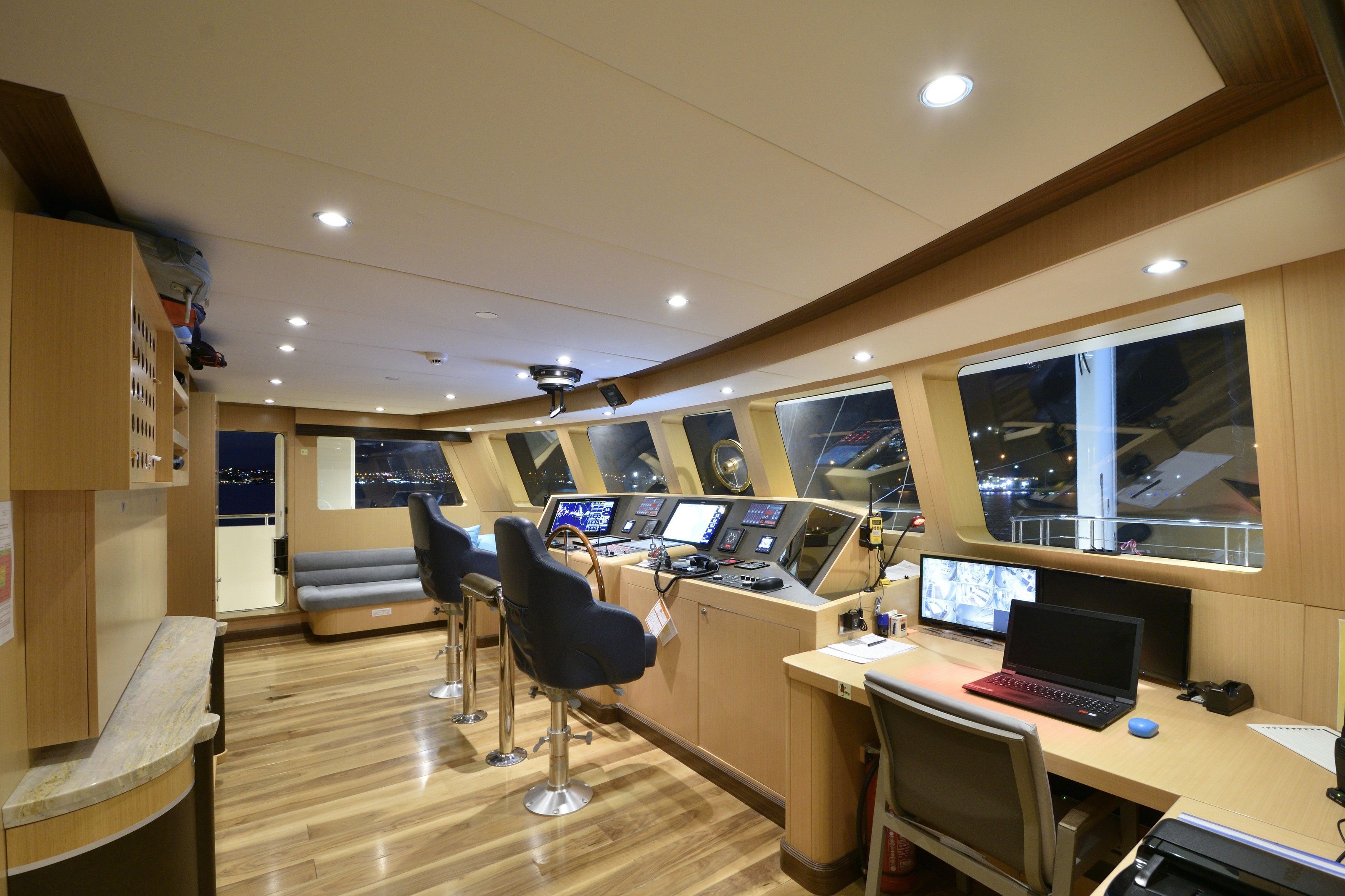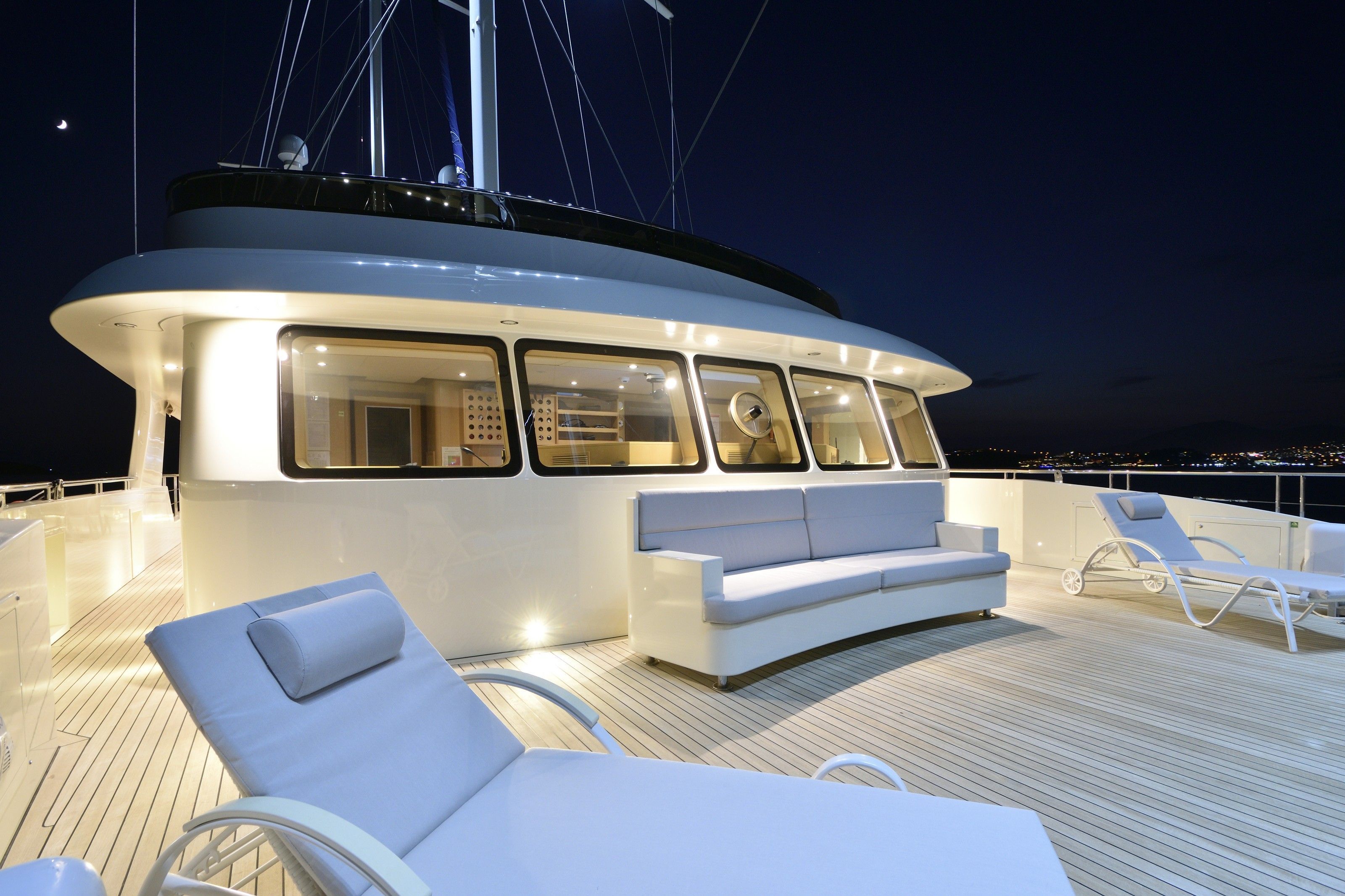 Водоизмещающий стальной корпус с алюминиевой надстройкой обеспечивает простор и комфорт внутри и особую устойчивость качке во время стоянок на якоре.