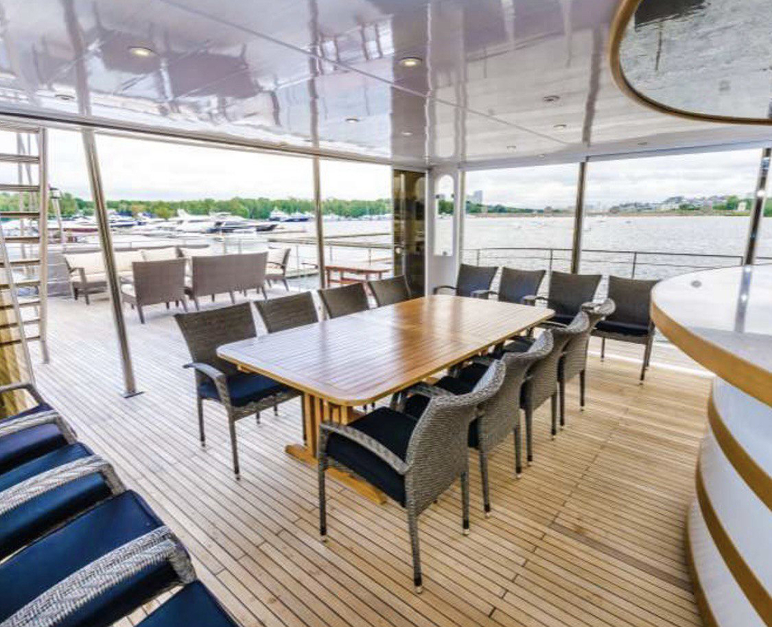 Также на борту можно провести дневное мероприятие до 25 гостей. Ваша свадьба, юбилей или корпоратив на борту этой яхты станут незабываевым воспоминанием. Также на борту можно провести неформальную деловую встречу или приватные переговоры самого высокого уровня.