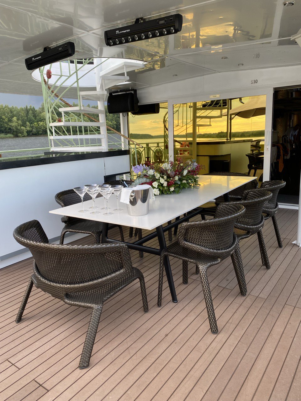 Весь внешний вид это корабля располагает к торжеству и роскоши. Уникальный индивидуальный дизайн, больше такого судна нет на акватории Московских водохранилищ. Простор и приватность Вашего отдыха.
