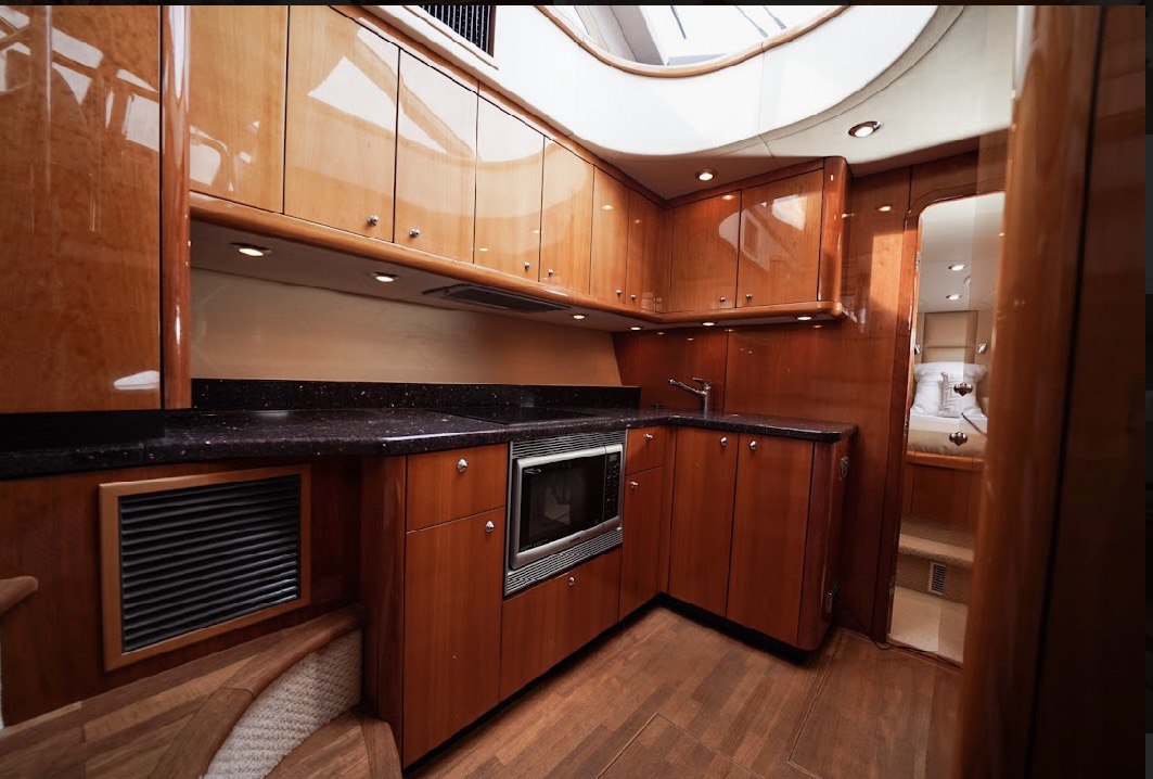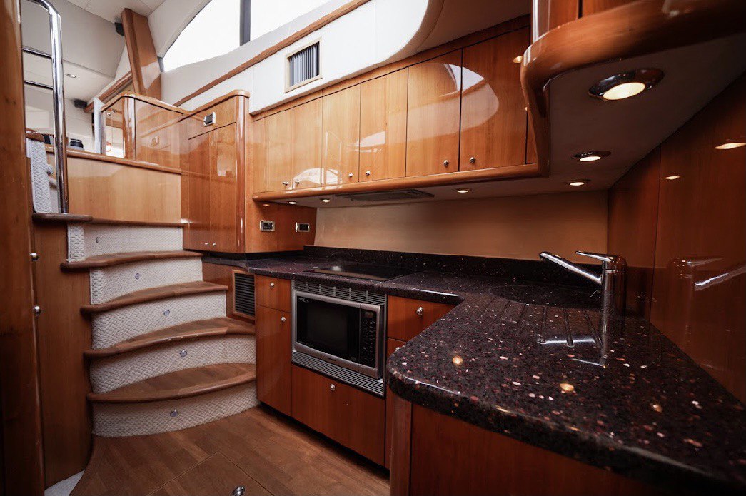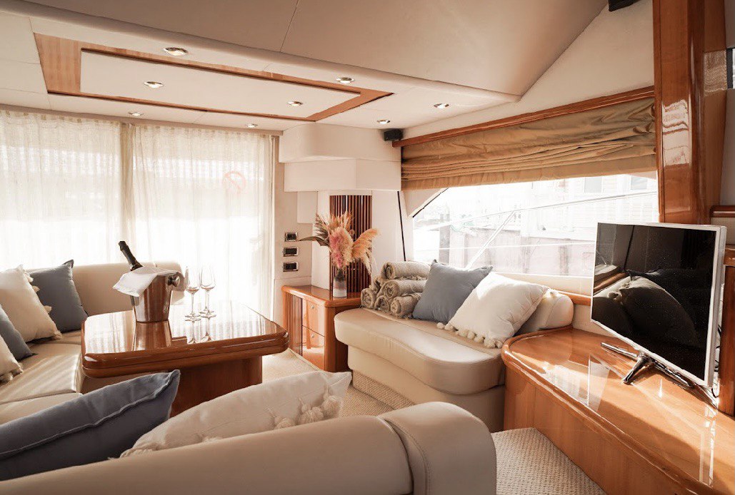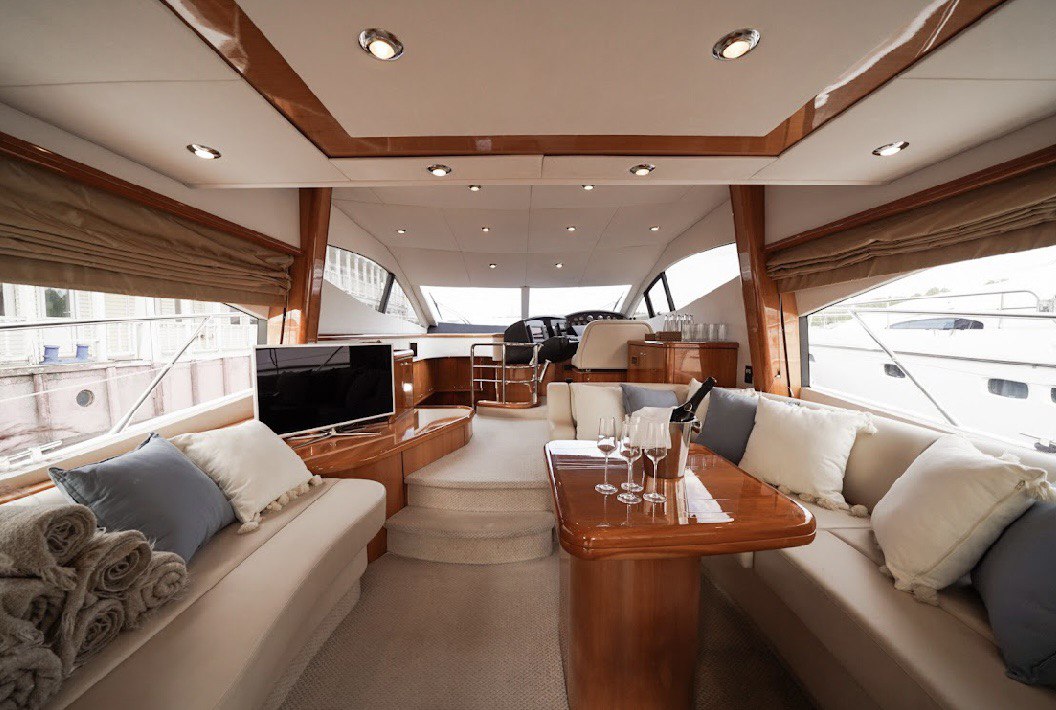 Прекрасная яхта от известнейшего в мире бренда моторных судов из Великобритании. На борту есть все удобства, которые понадобятся в течение одного или нескольких дней путешествия: кондиционируемые каюты с душевыми и туалетами, стильный салон с мягкой зоной, полноценная кухня, просторный флайбридж. Все каюты меблированы со вкусом и без лишних деталей, чтобы максимально освободить нужное пространство.