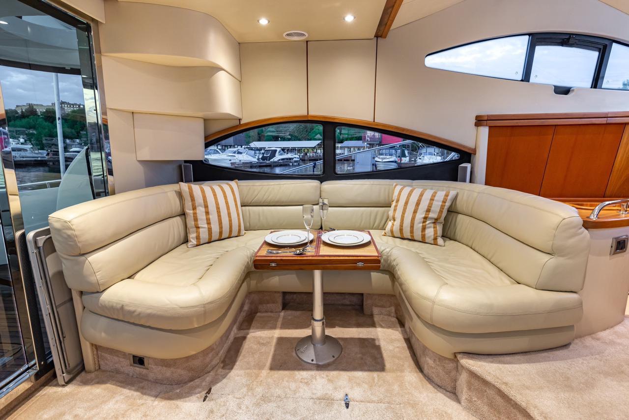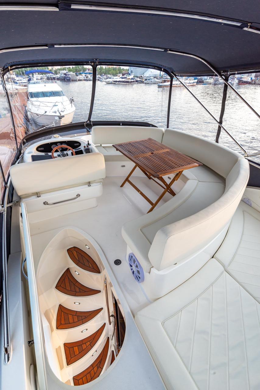 Предлагаем вам насладиться красотами Подмосковья с борта великолепной яхты известной британской верфи Sunseeker. На яхте длиной 15 м с комфортом могут разместиться до 11 гостей. Эта яхта идеально подходит для отдыха как семьёй, так и в небольшой компании друзей. Для вашего удобства на борту есть 2 уютных каюты и просторный салон. А на флайбридже есть стол и комфортные диваны для отдыха.